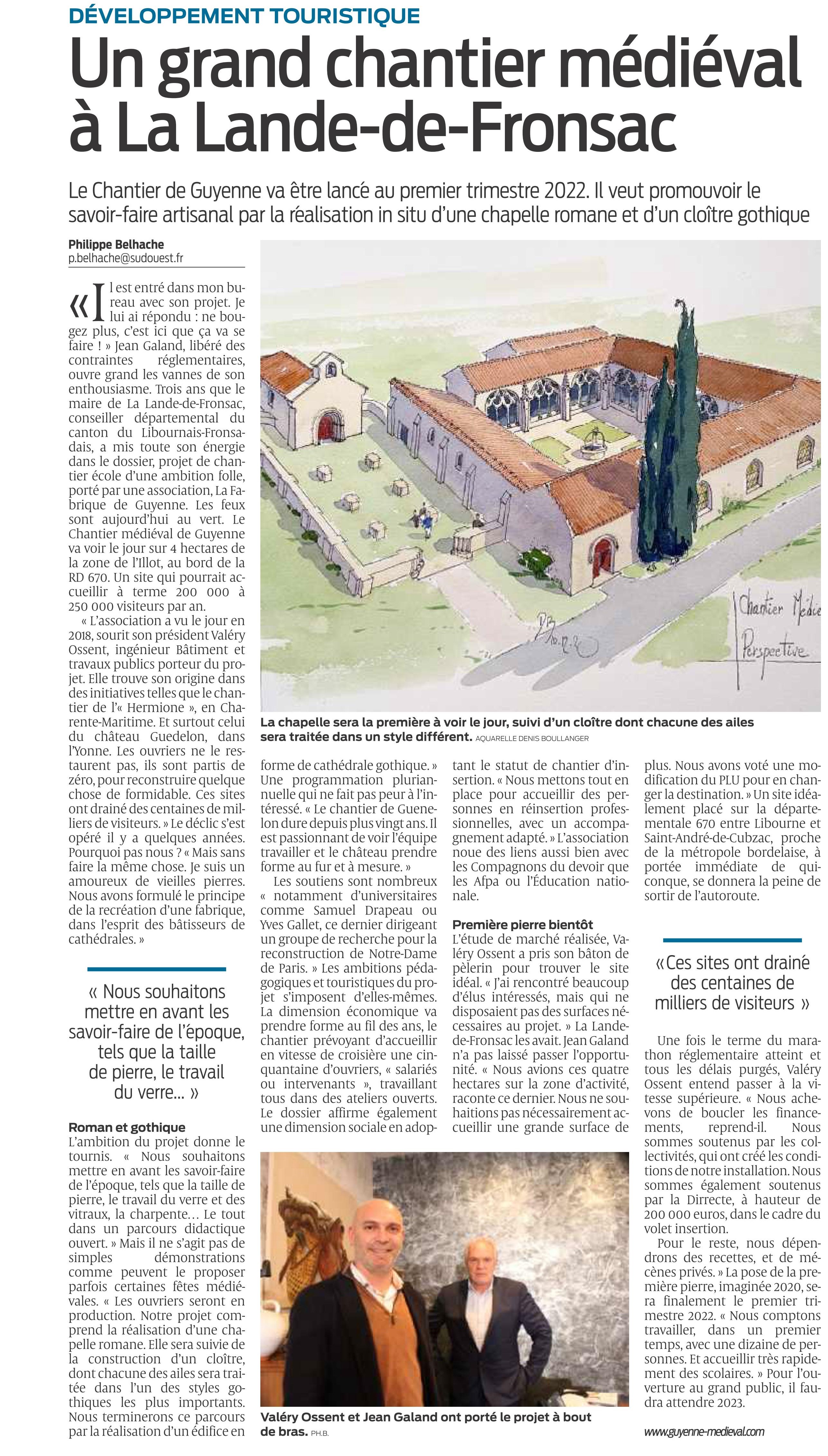Article du Journal Sud-Ouest concernant le démarrage de la première phase du Chantier Médiéval de Guyenne.
